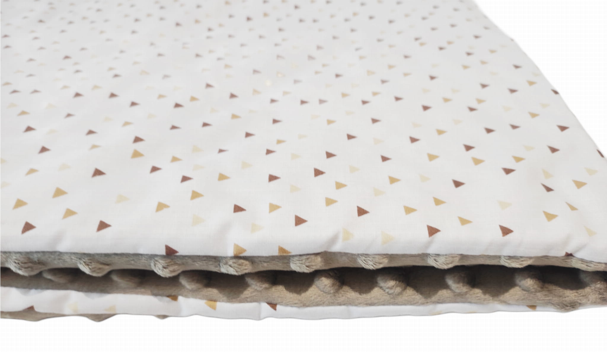Kocyk 160x200 Kołdra beżowe trójkąty z beżowym minky