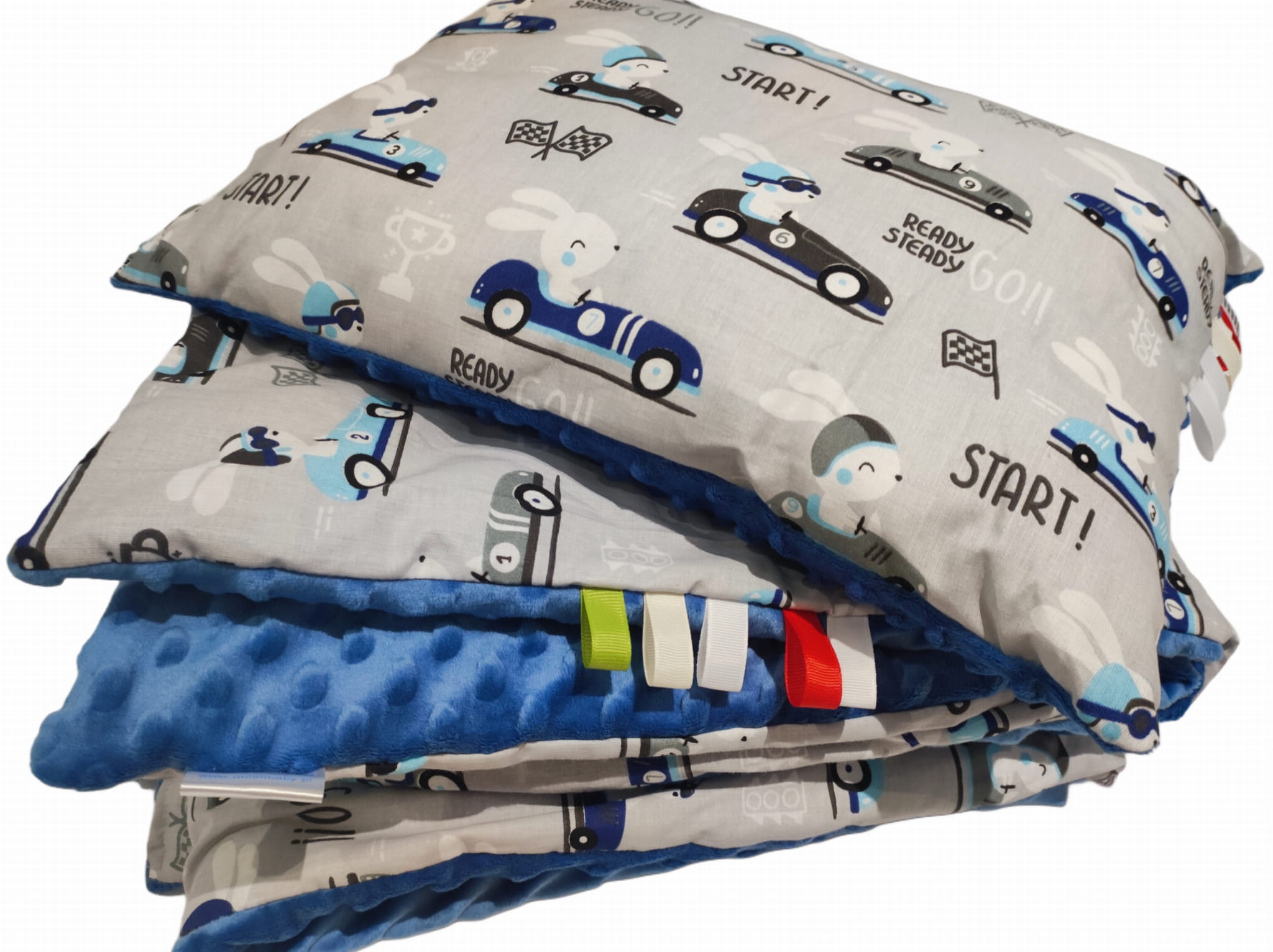 Zestaw dla dzieci, które kochają ruch, samochody i… sympatyczne króliczki! Nasz komplet: kocyk 75x100 cm + poduszka 30x40 cm świetnie sprawdzi się w żłobku, przedszkolu, na leżakowanie, wózek czy jako prezent dla chłopca.