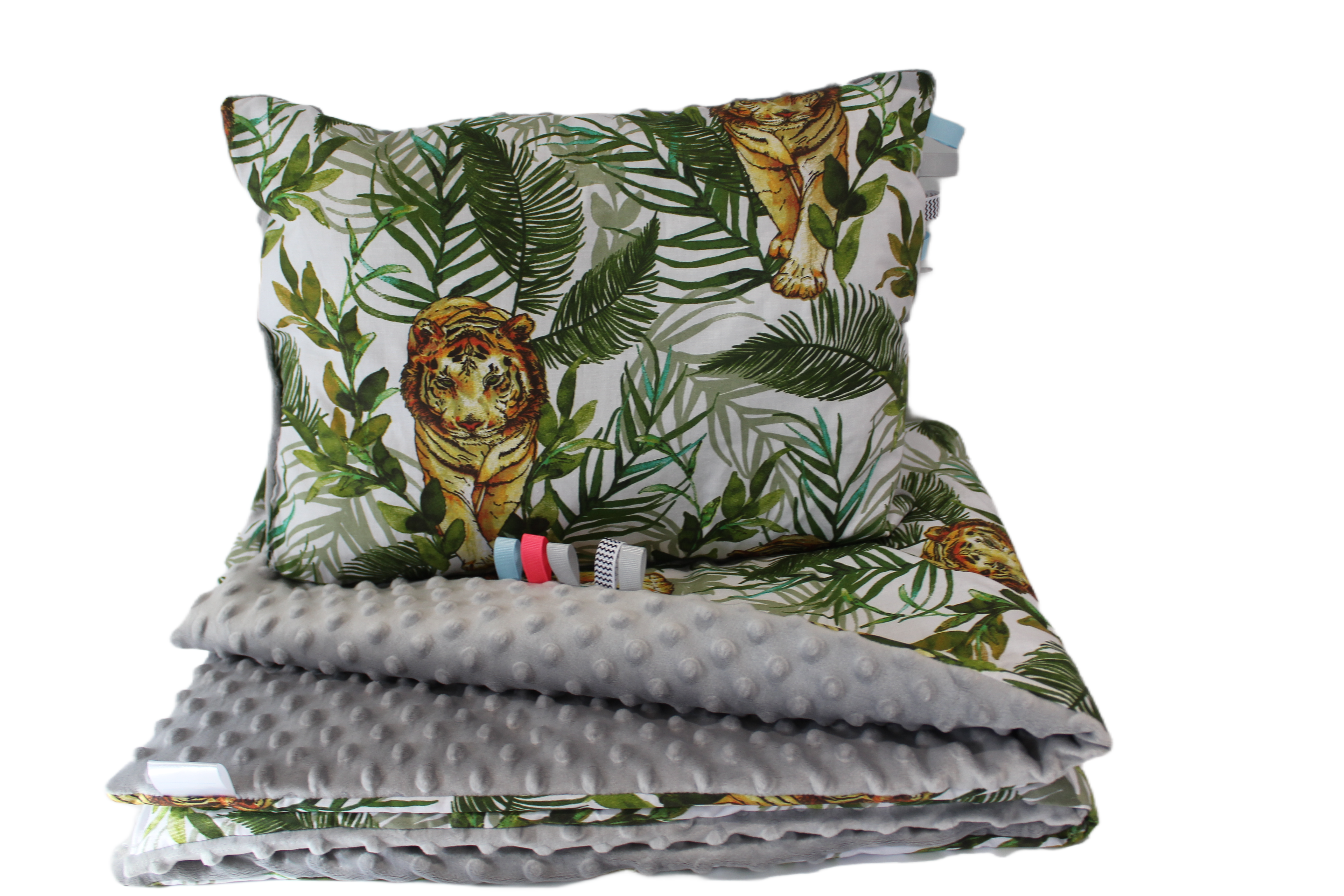 Kocyk Minky długi 80x220 lub 90x200 na leżaczek do Przedszkola Tygrys w dżungli + poduszka