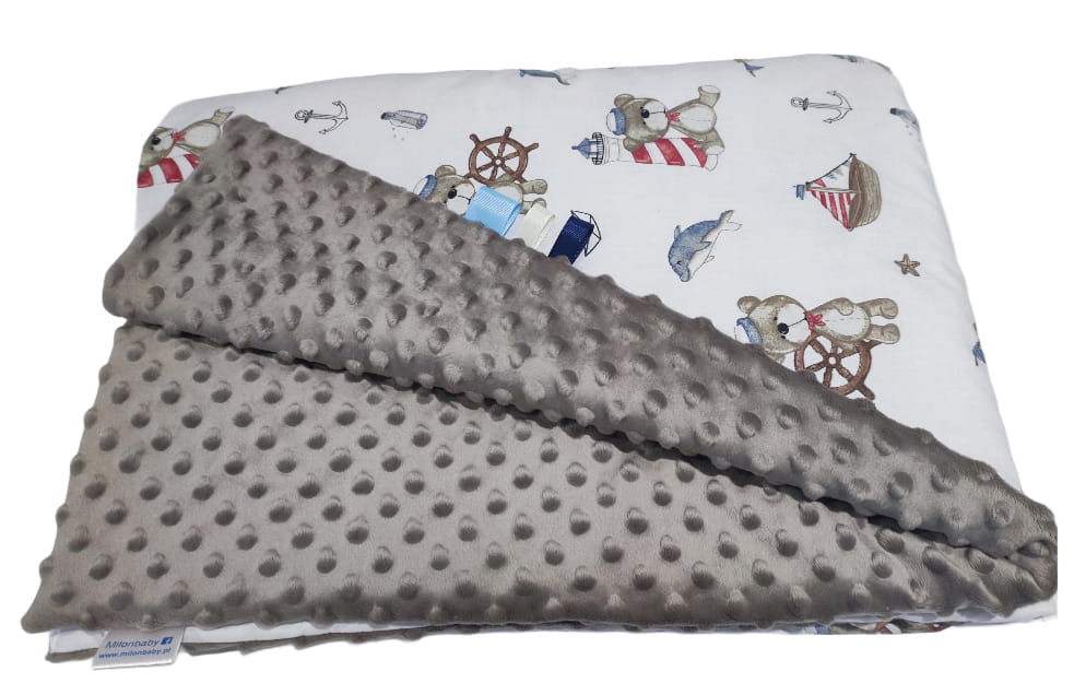 Kocyk Minky kołderka 160x200 Miś marynarz z beżowym minky