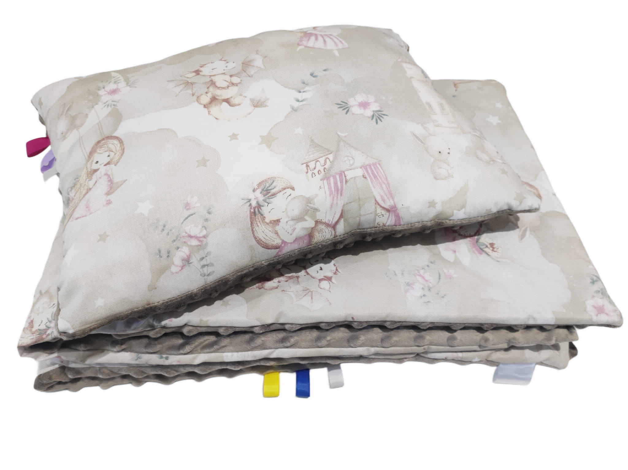 Kocyk i poduszka 75x100 Dziewczynka z zamkiem + beżowy Minky | Komplet dla dziewczynki