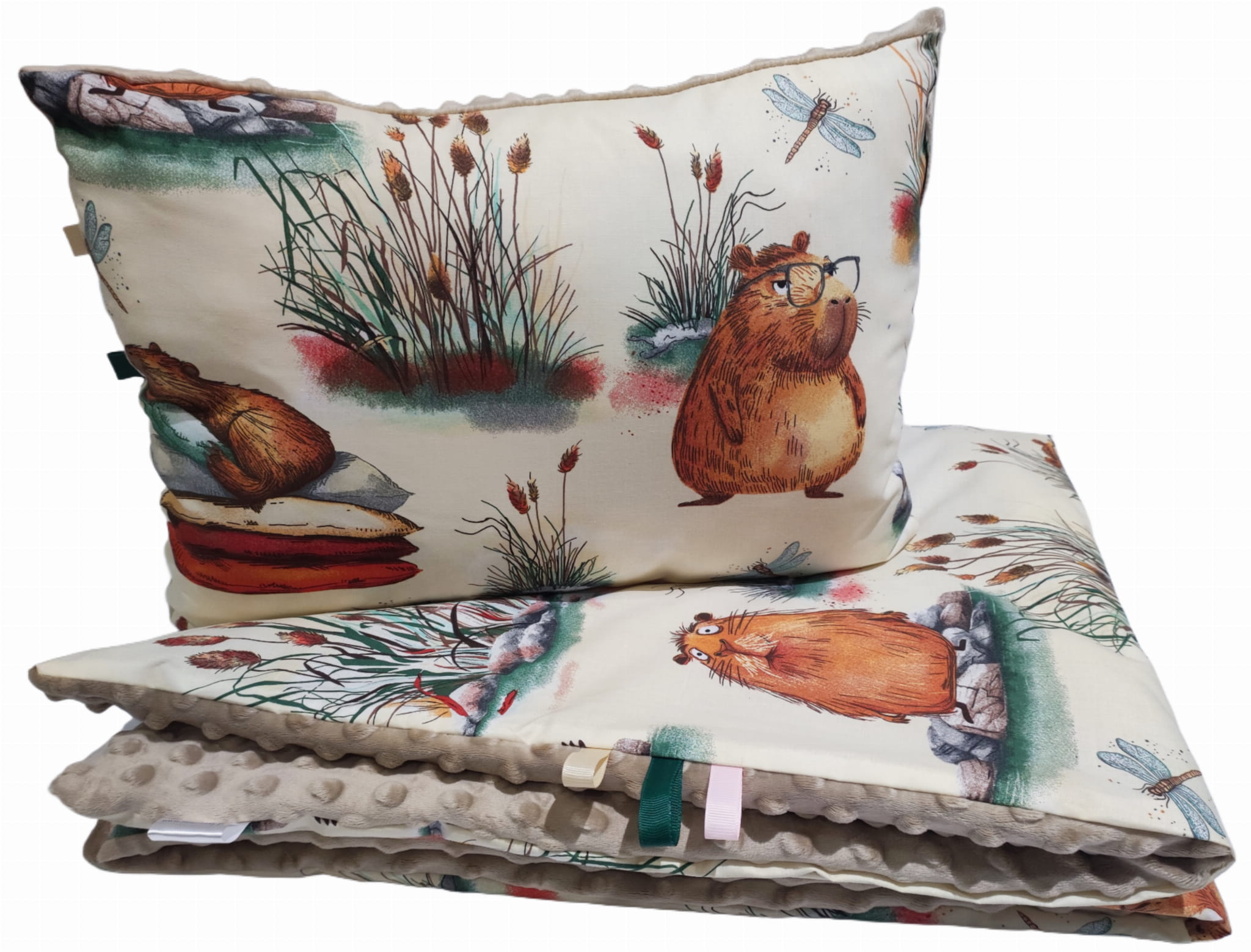 Kocyk i poduszka Minky do Przedszkola i żłobka 70x140, 100x135 lub 100x150 wzór Beżowy Kapibara