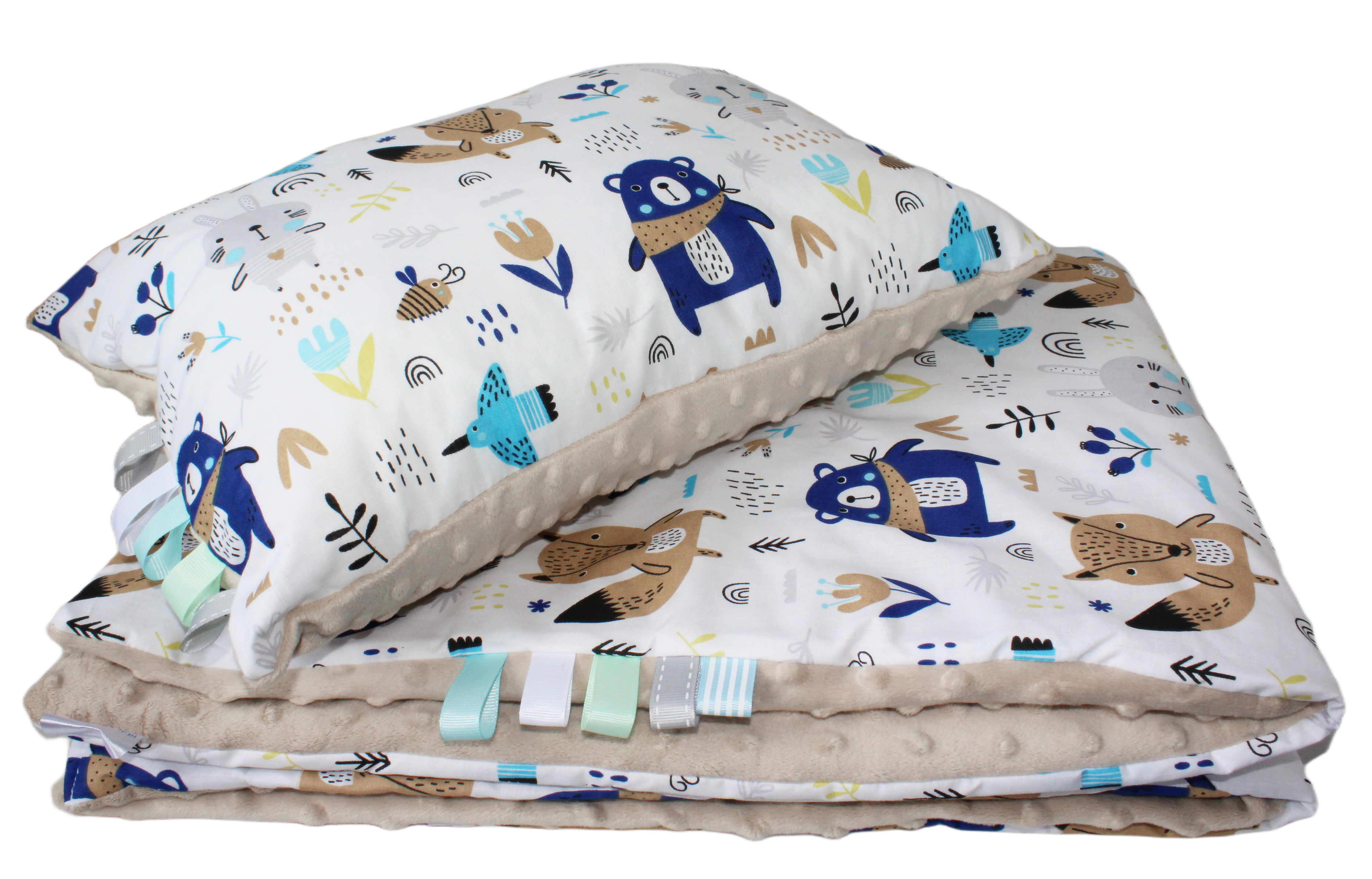 Kołdra Minky 140x180 i poduszka 60x40 komplet Leśne zwierzęta z wypełnieniem