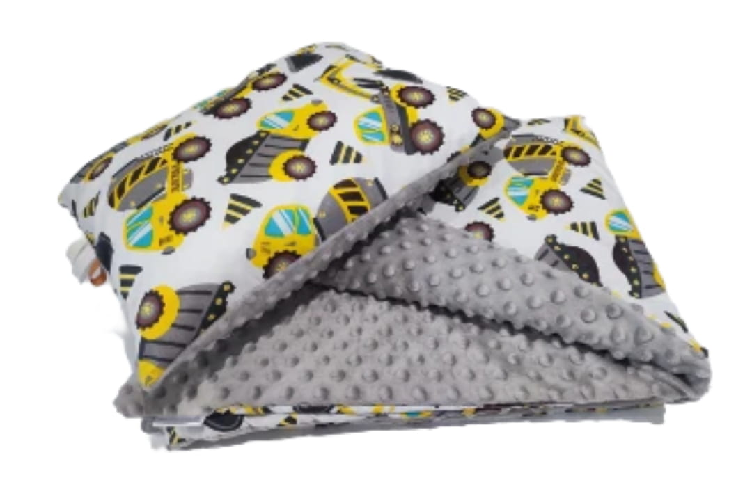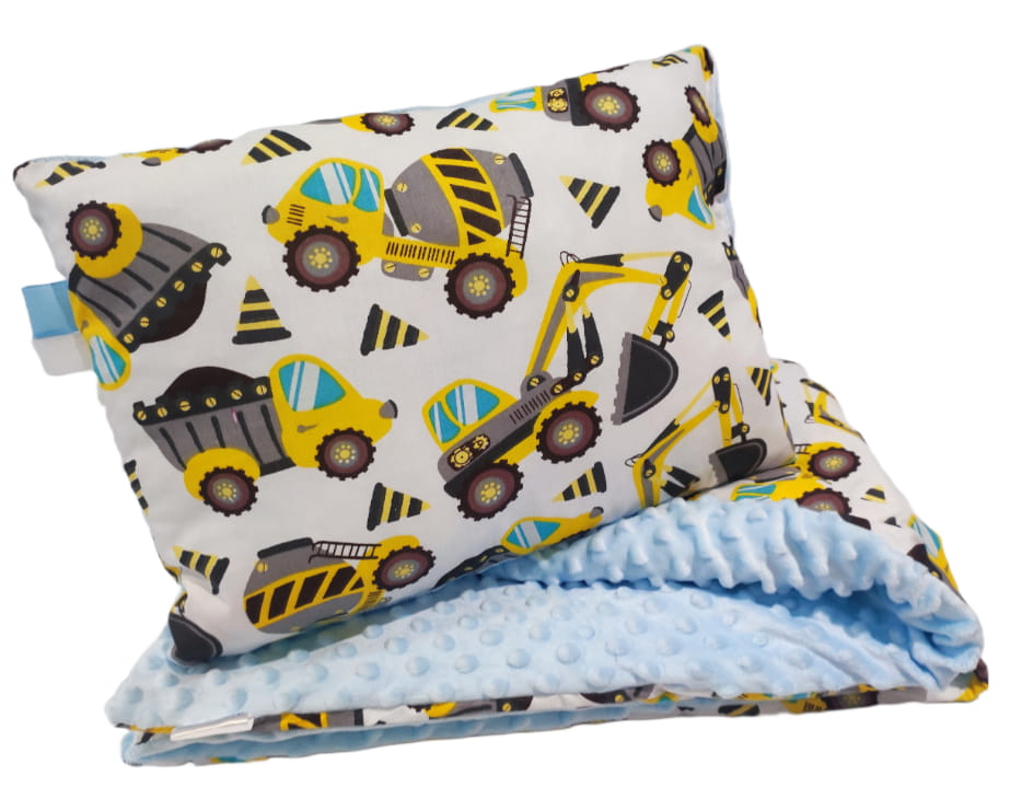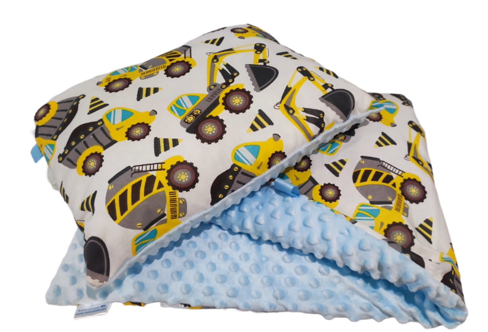 Kołdra Minky 140x180 i poduszka komplet Koparka pojazdy budowlane Minky z wypełnieniem