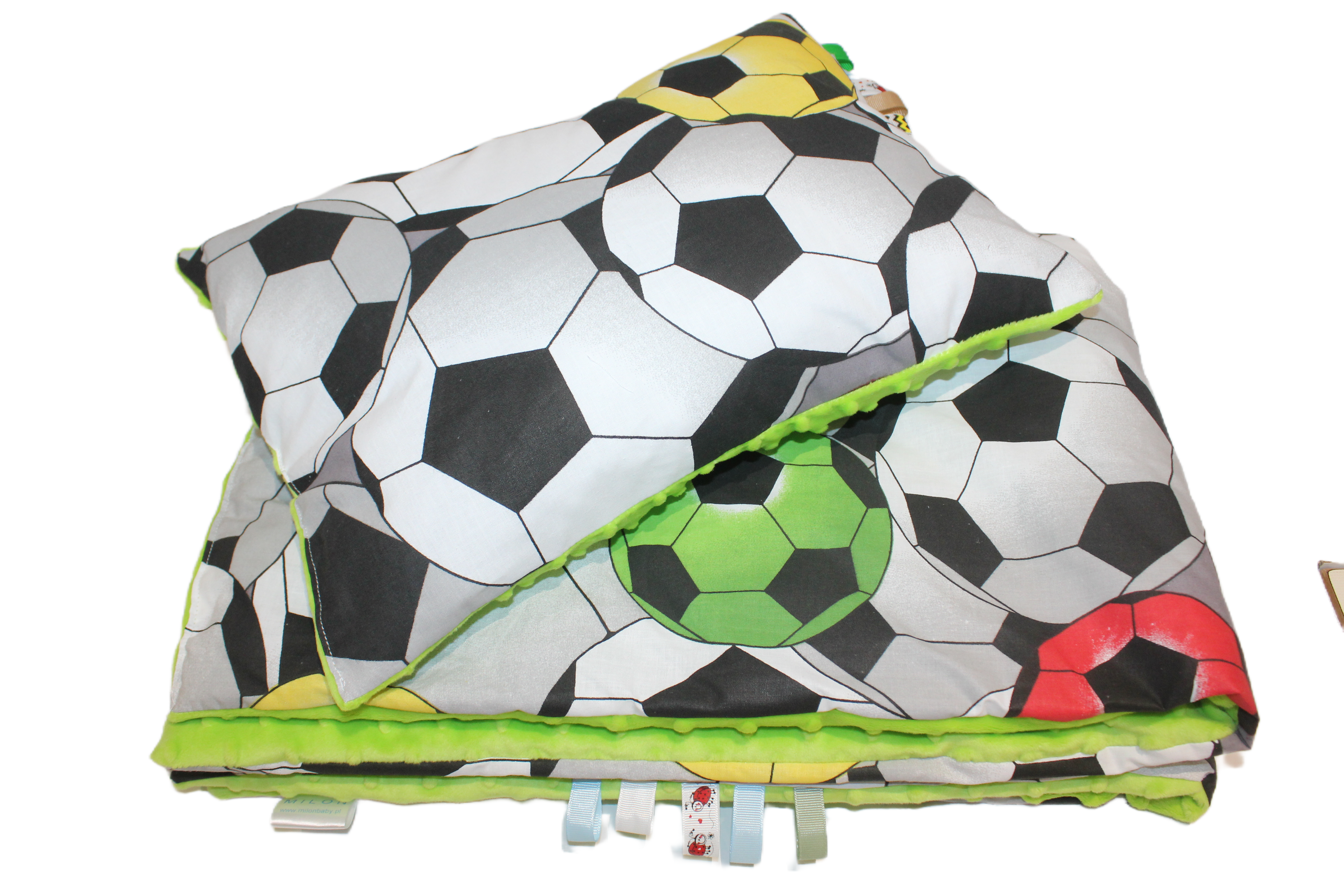 Kołdra dziecięca z poduszką motywem Piłek z minky – Komfort i Styl