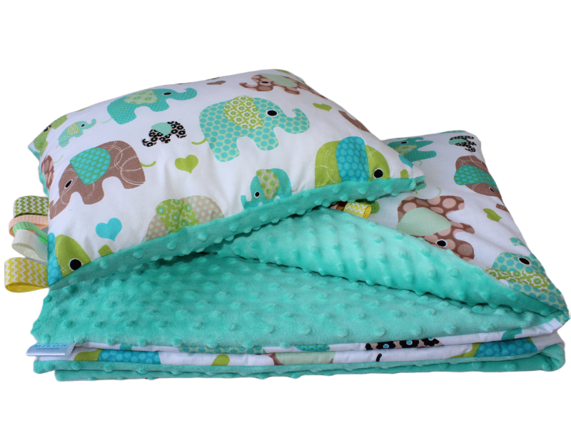 Komplet pościel Minky 2 el dla dzieci z zielono-miętowymi Słonikami: