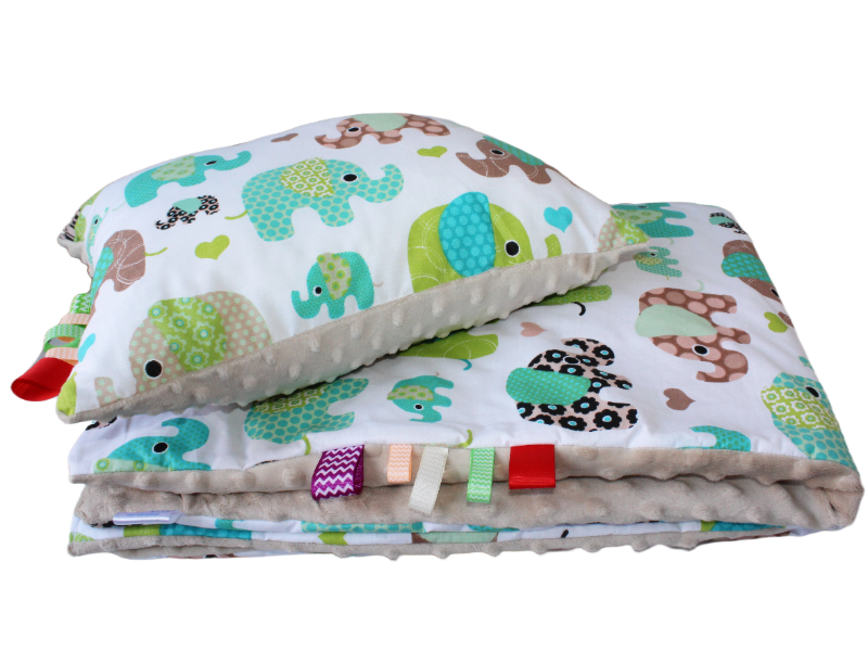 Kołdra Minky 140x180 i poduszka komplet Słonie z wypełnieniem