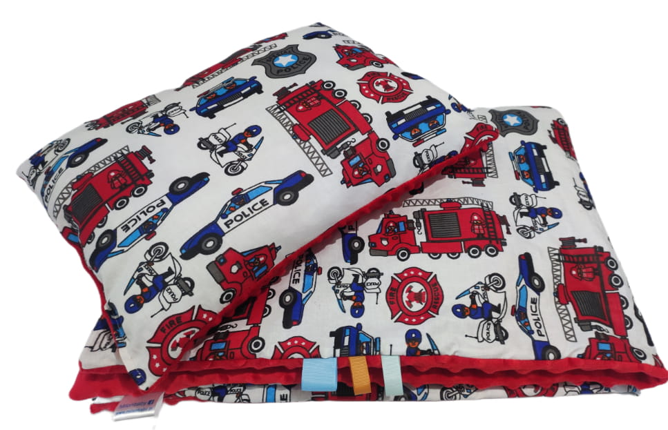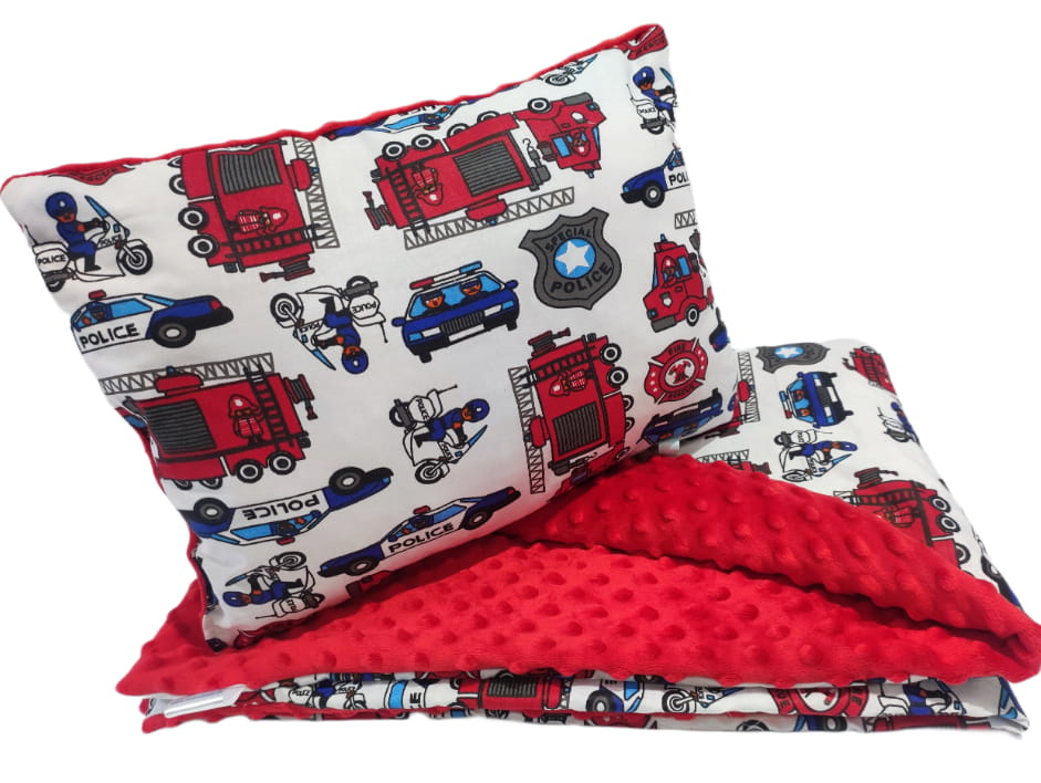 Kołdra dziecięca z poduszką z motywem pojazdów strażackich i policyjnych – Komfort i Styl