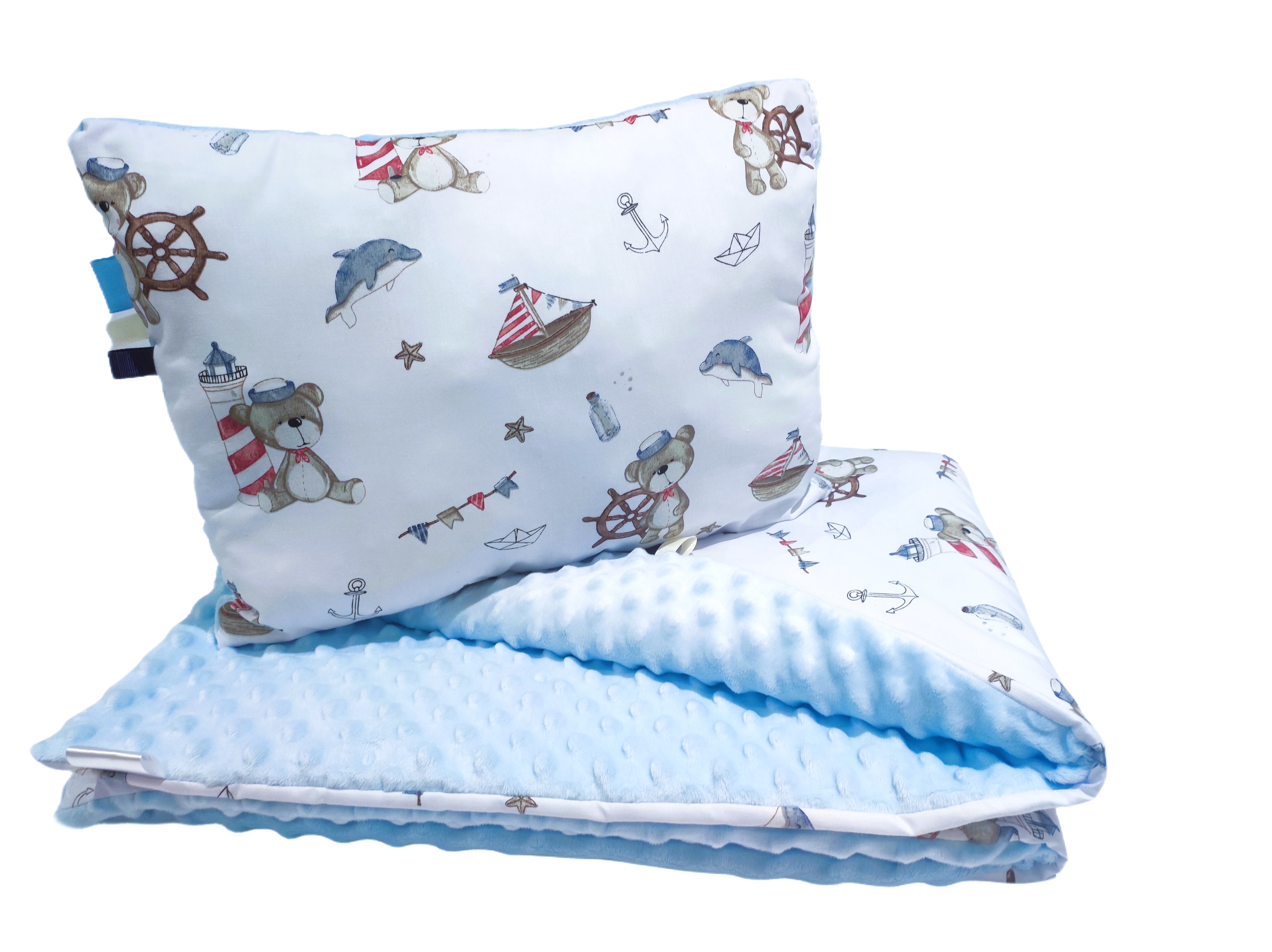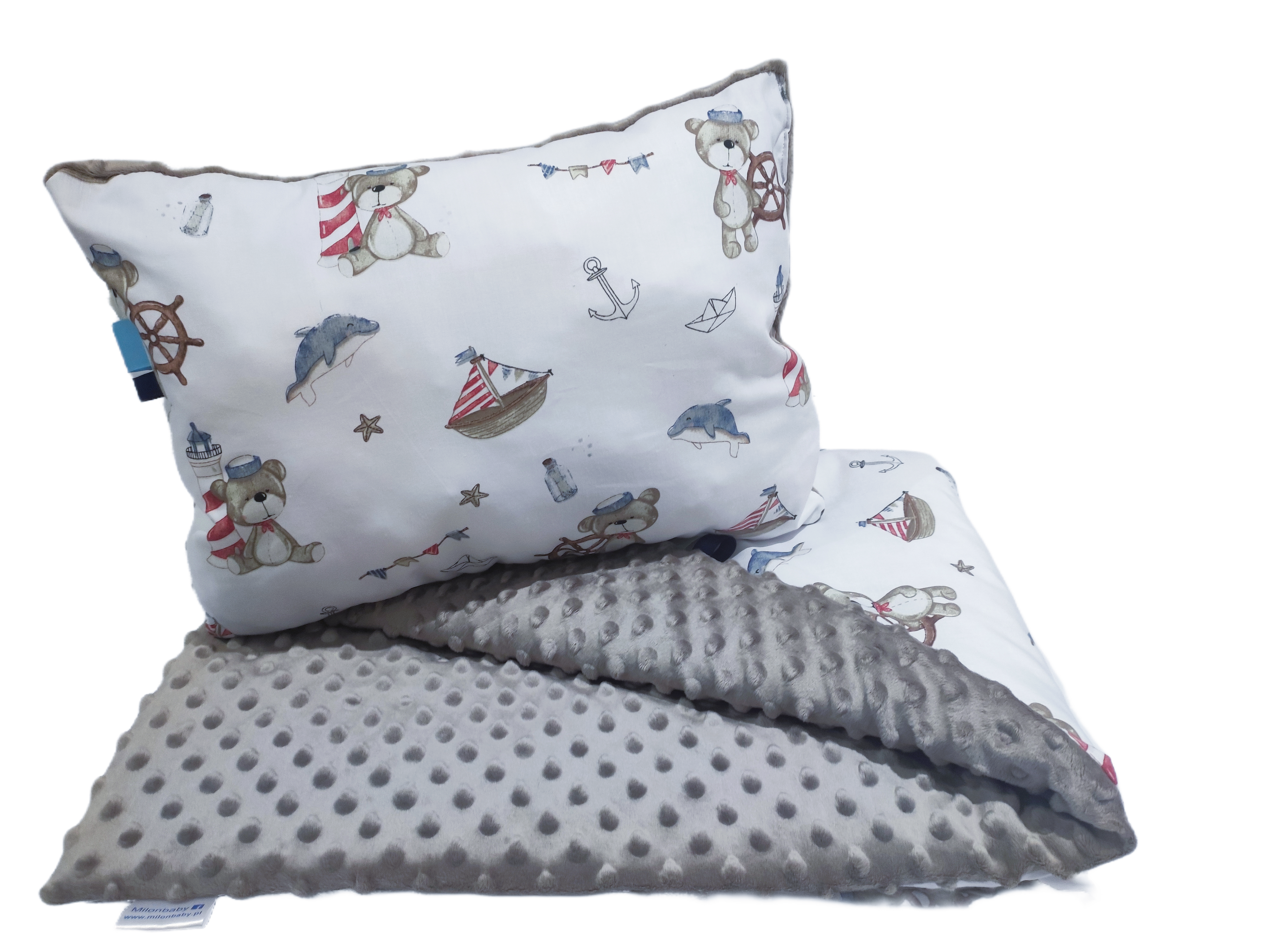 Kołdra Minky 160x200, 150x200 lub 140x200 i poduszka Miś marynarz