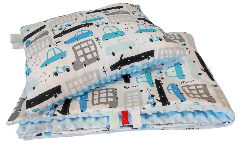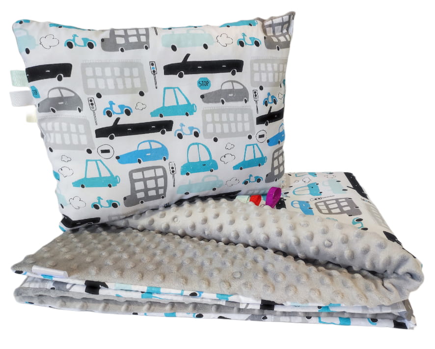 Kołdra Minky 160x200,150x200 lub 140x200 i poduszka Auta szare niebieskie