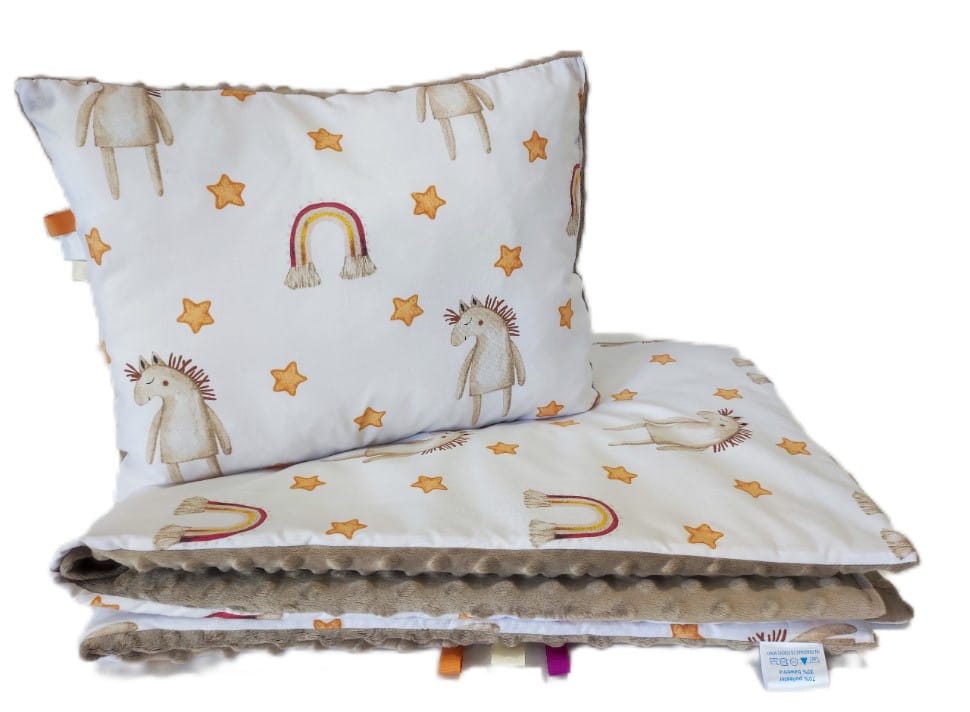 Kołdra Minky 160x200,150x200 lub 140x200 i poduszka Koń z tęczą
