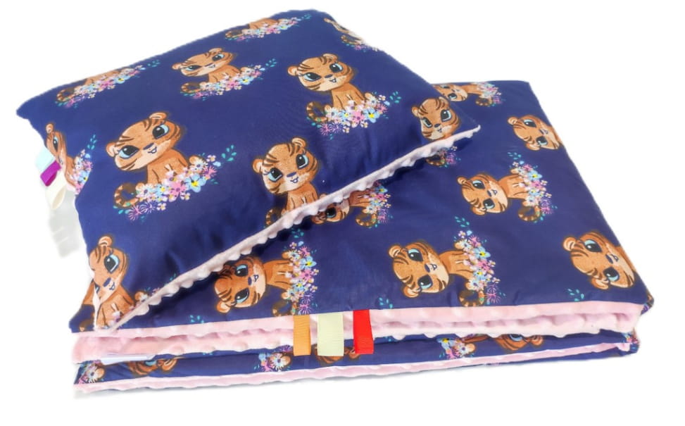 Komplet pościeli Minky: Kołdra - kocyk dwustronna Minky/bawełna w środku wszyta lekka włóknina silikonowa antyalergiczna- wersja standardowa uniwersalna całoroczna. Możliwość wykonania bez wypełnienia w wersji typowo letniej lub z grubszym wypełnieniem w wersji zimowej. Poduszka Minky/bawełna wypełniona sprężystą kulką silikonową antyalergiczną.