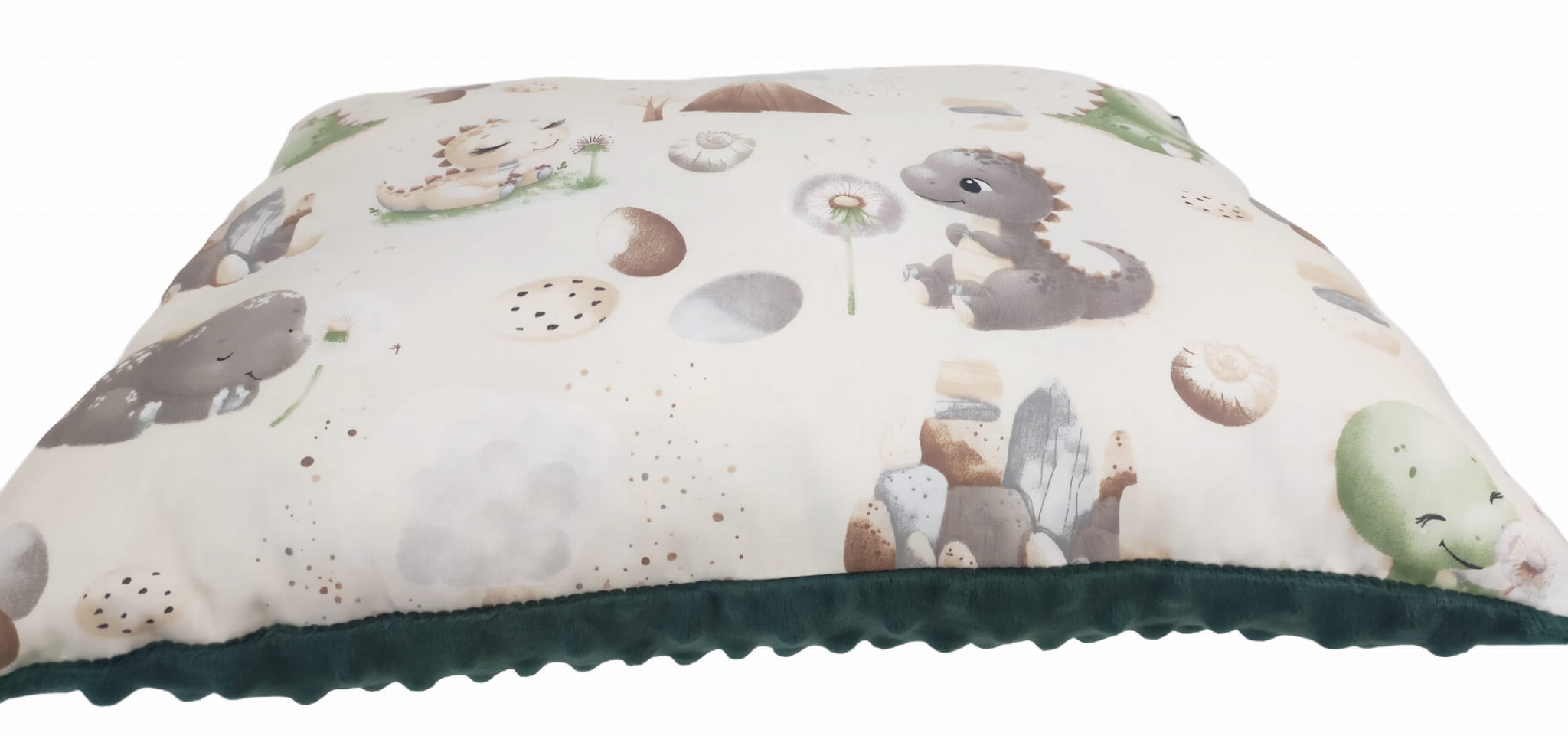 Poduszka Minky Bawełna 30x40 / 40x40 / 50x60 – Dinozaury butelkowy zielony Minky Miękka, Ozdobna, do Spania, dla Dzieci