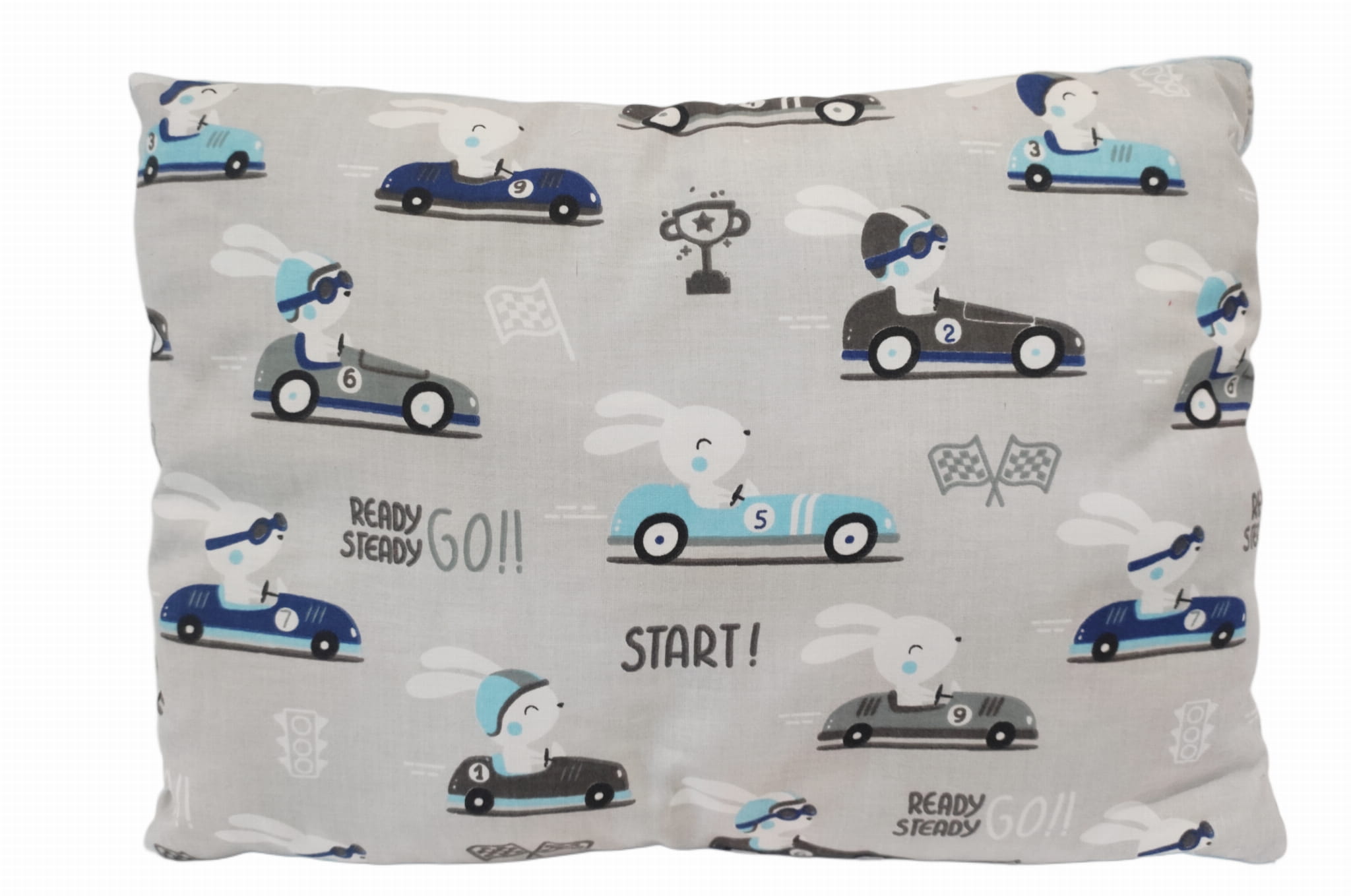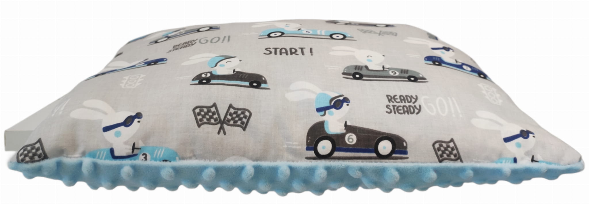 Poduszka Minky Bawełna 30x40 / 40x40 / 50x60 – Królik rajdowy wyścigowy z błękitnym Minky Miękka, Ozdobna, do Spania, dla Dzieci