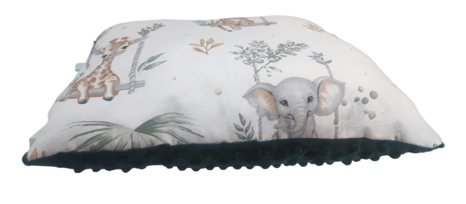Poduszka Minky Bawełna 30x40 / 40x40 / 50x60 –Zwierzęta na huśtawce z butelkowym zielonym Minky Miękka, Ozdobna, do Spania, dla Dzieci
