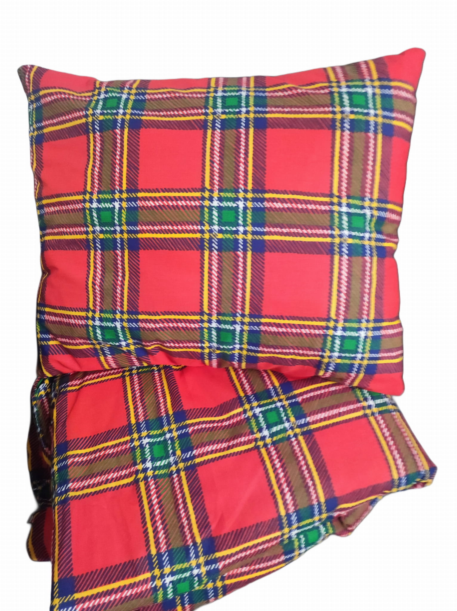 Pościel 140x200 + 70x80 cm czerwona krata bawełniana