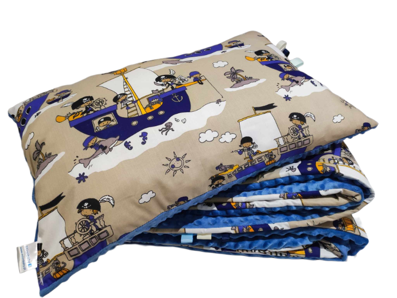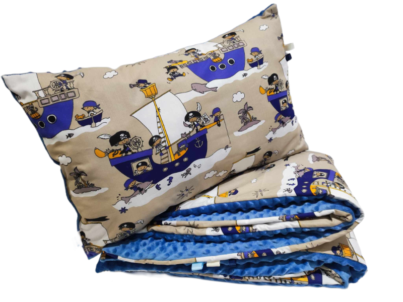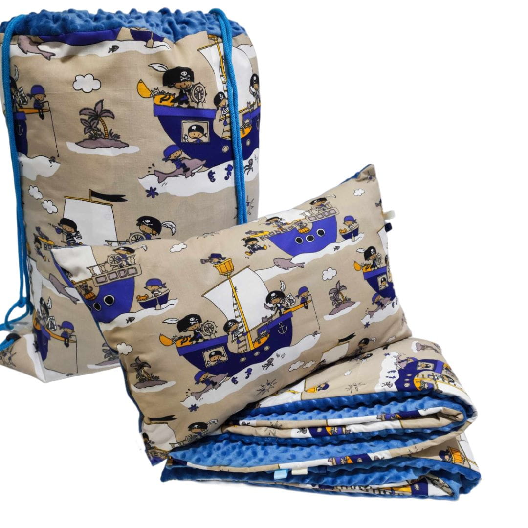 Pościel Minky do Przedszkola 135x100 z Workiem zestaw z poduszką Statek piracki