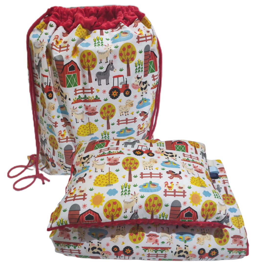 Pościel Minky do Przedszkola z Workiem 100x135 30x40 zestaw z poduszką Farma z traktorem z czerwonym Minky