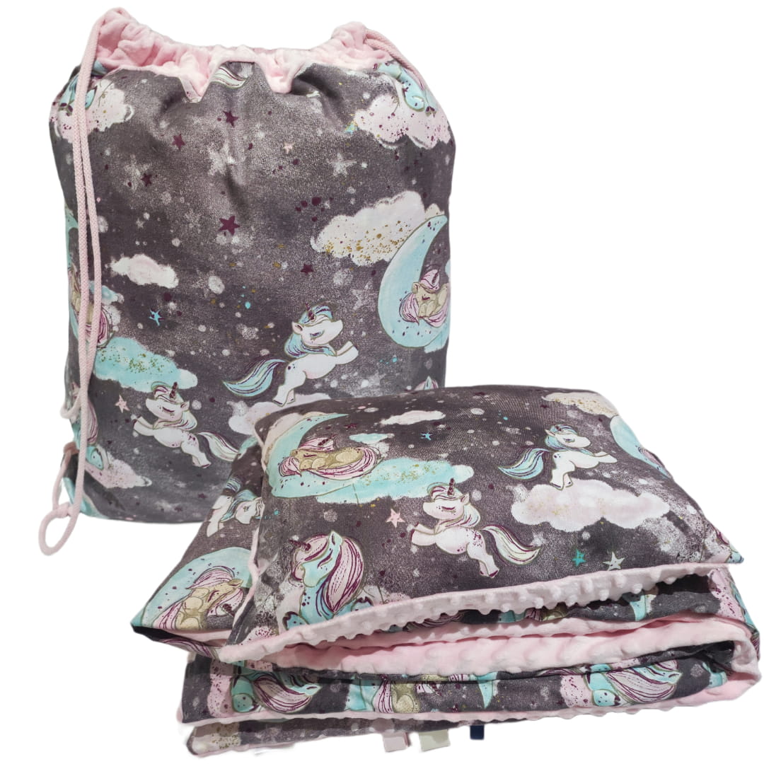 Kocyk Minky 100x135, poduszka Minky 30x40, worek na pościel Minky 50x60.