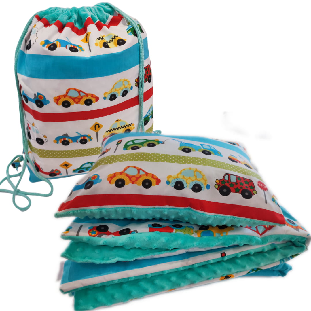 Pościel Minky do Przedszkola z Workiem zestaw 100x135 30x40 z poduszką Małe autka