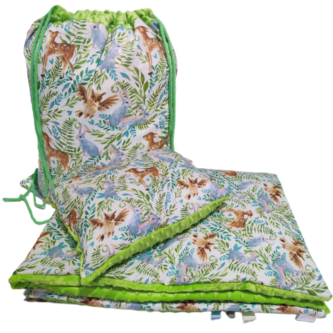 Pościel Minky do Przedszkola z Workiem zestaw 100x135 30x40 z poduszką Sarenki z lesie