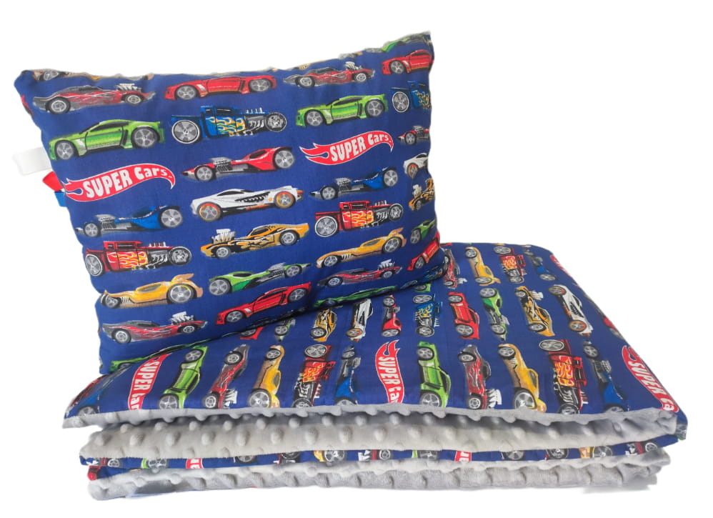 Pościel Minky z wypełnieniem 100x160 50x60 kołdra i poduszka Super Cars