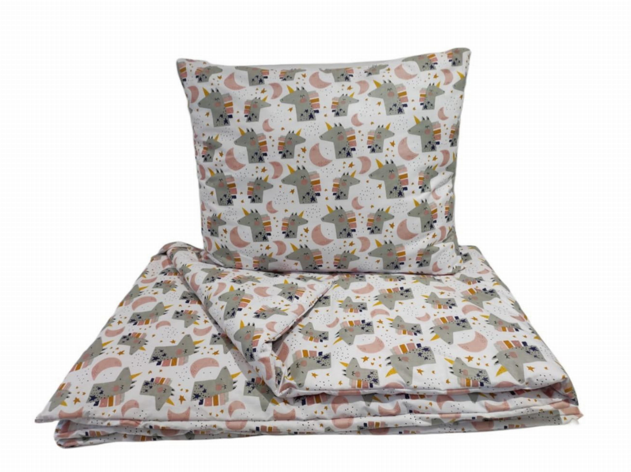 Pościel bawełniana 100x135 + 60x40 – Jednorożce i księżyce na białym tle