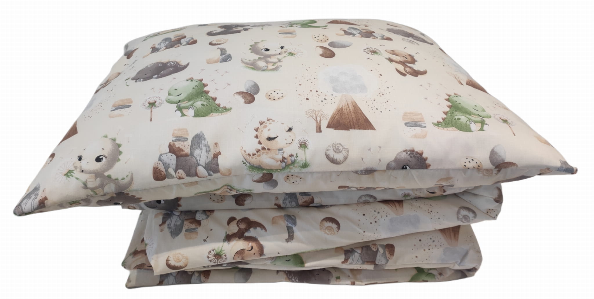 Pościel bawełniana 140x180 + 50x60 – Dinozaurowe wzory na beżowym tle | 100% bawełna, dwustronne poszewki