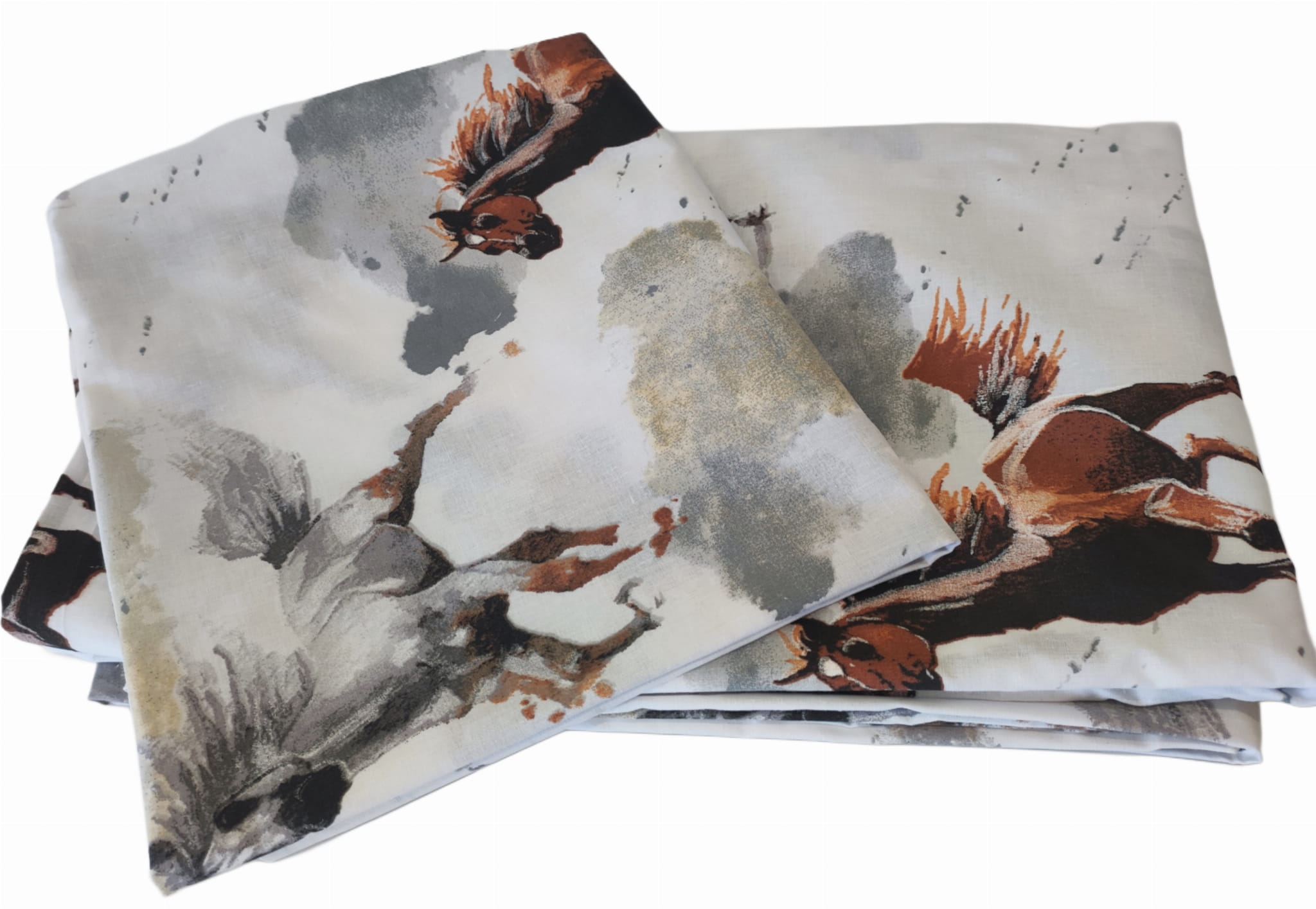 Pościel bawełniana 140x180 + 50x60 – Konie beżowe i szare Naturalny wzór, 100% bawełna