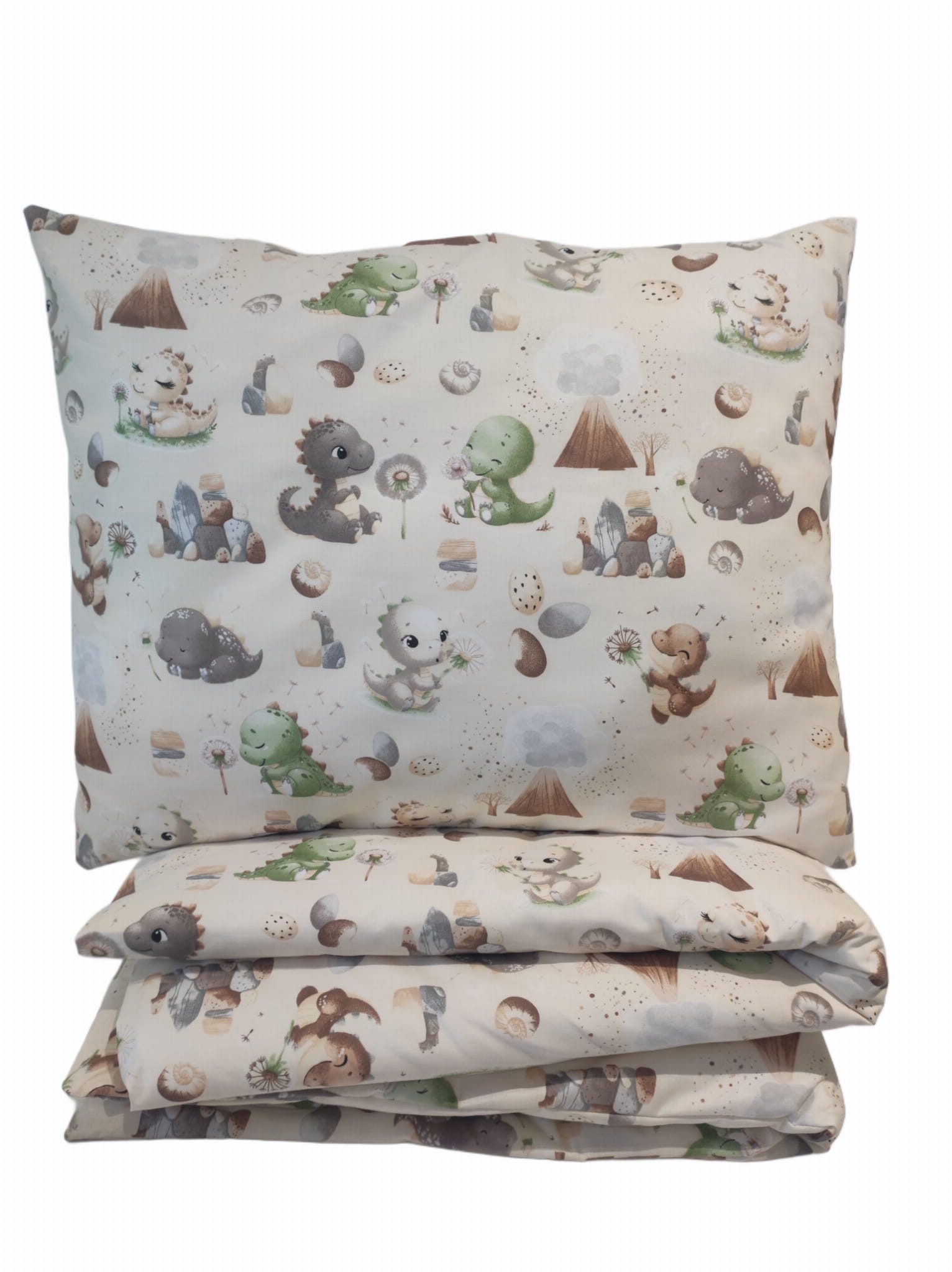Pościel dla Dzieci Komplet Dinozaury beżowe 100x160 lub 140x180 Poszewki