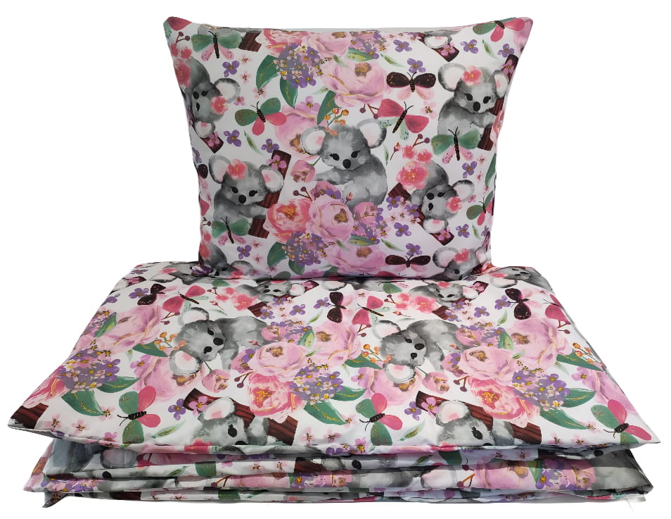 Pościel dziecięca 120x90 + 60x40 – wzór koala w kwiatach, 100% bawełna, zapinana na suwak