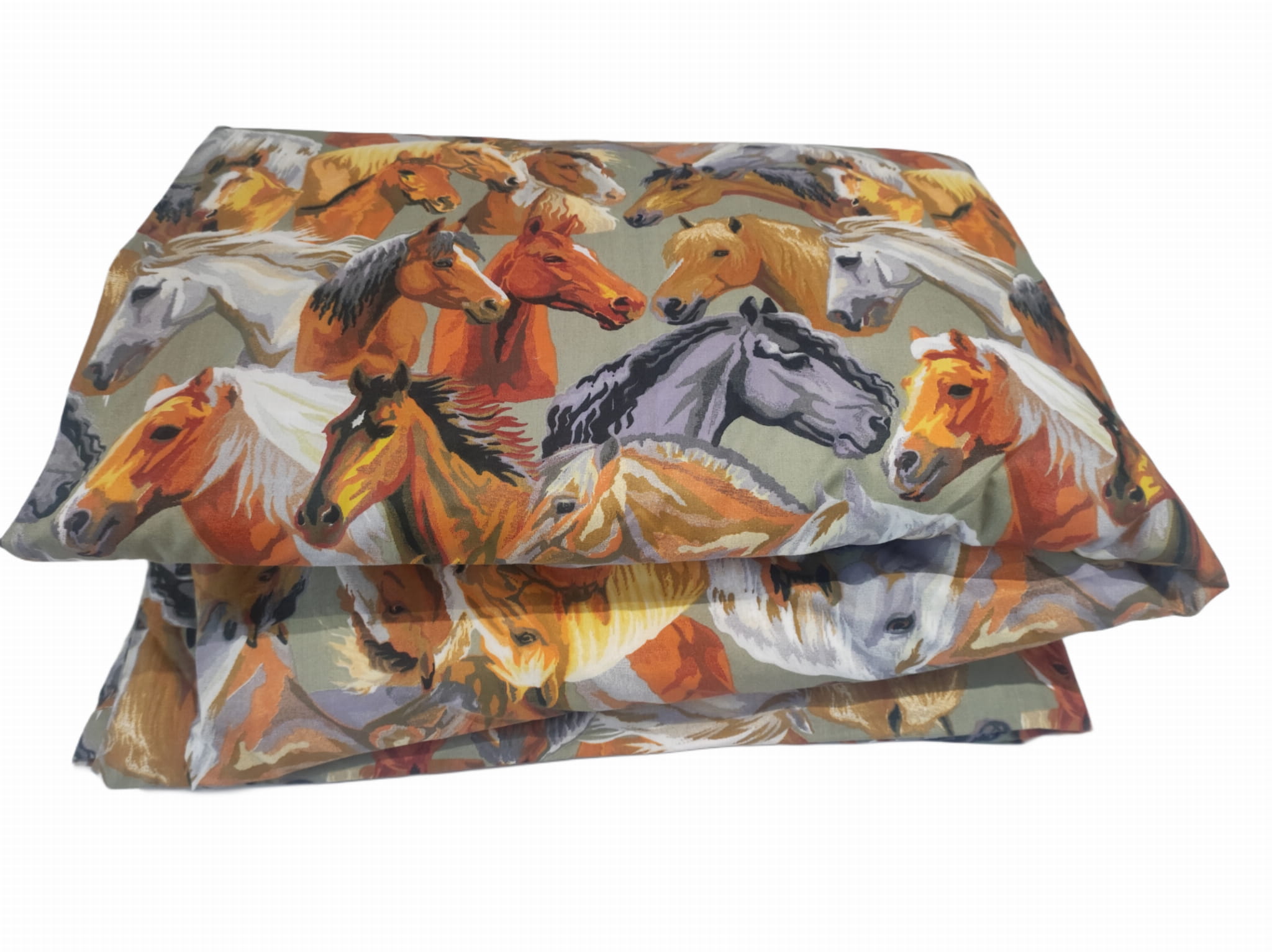 Pościel dziecięca 135x100 + 60x40 – wzór konie 100% bawełna, poszewki zapinane na suwak