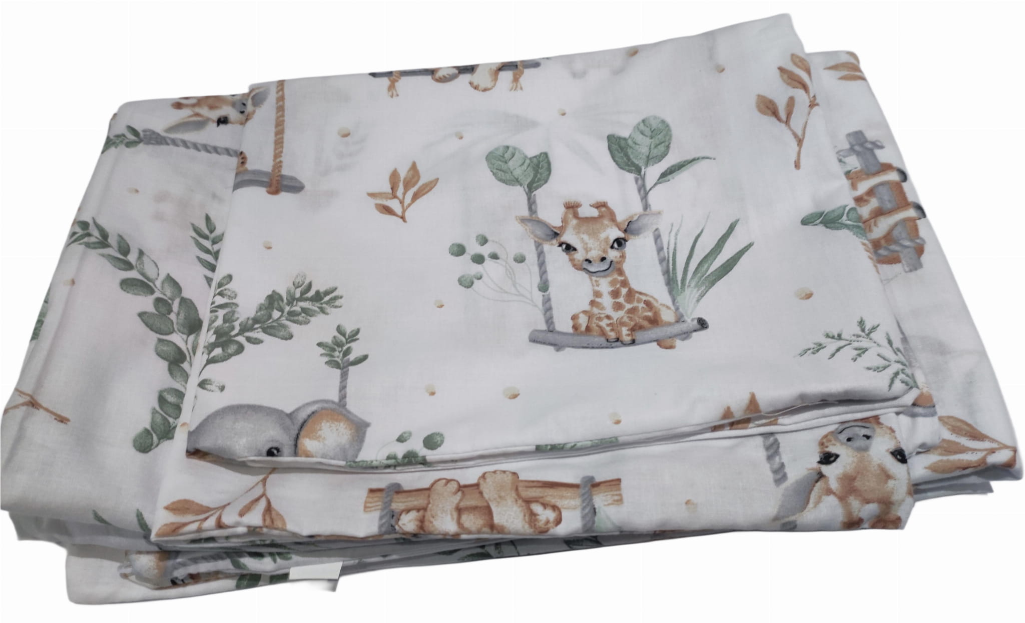 Pościel dziecięca bawełniana 100x135 + 60x40 wzór żyrafy na huśtawce– poszewki na suwak