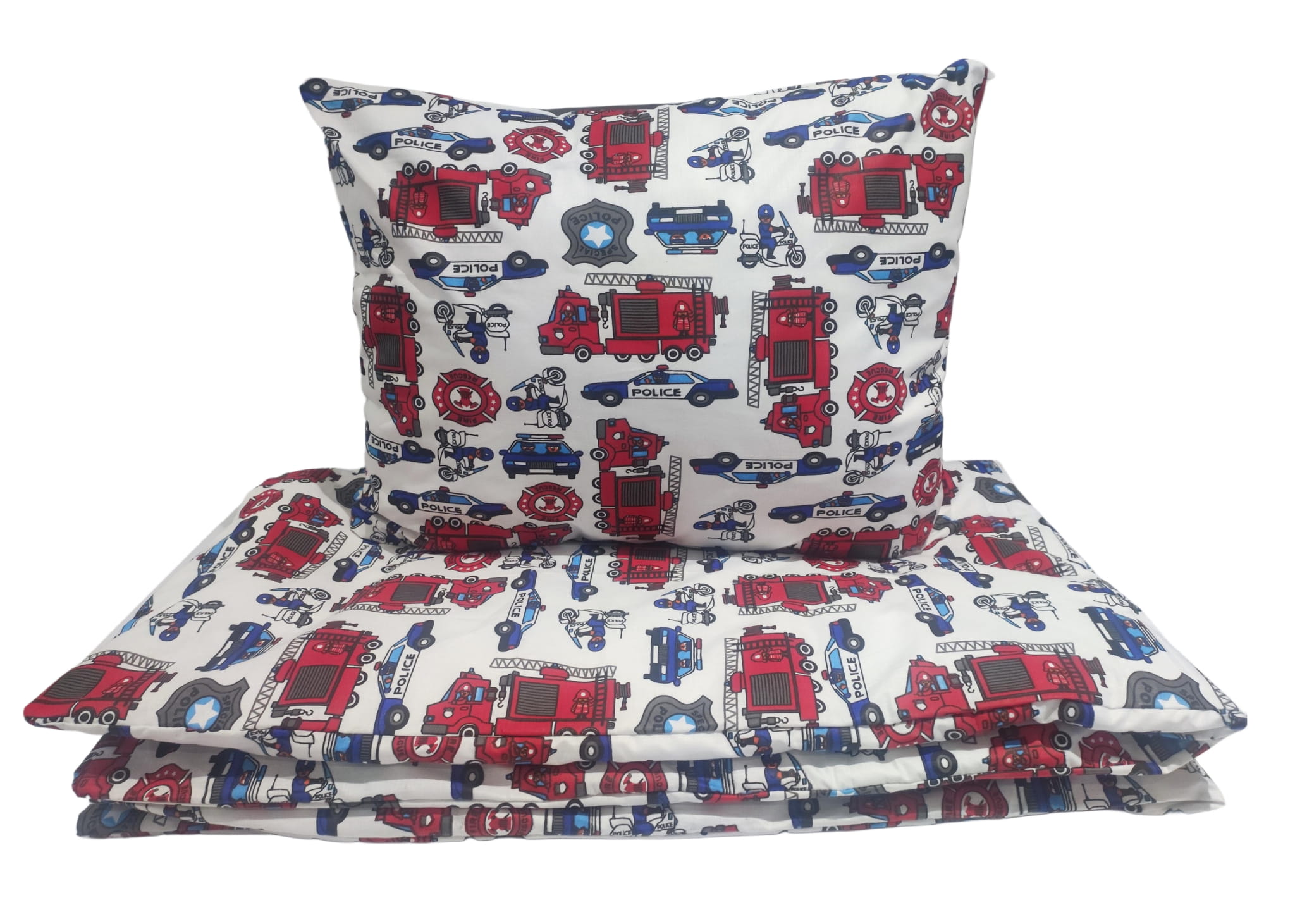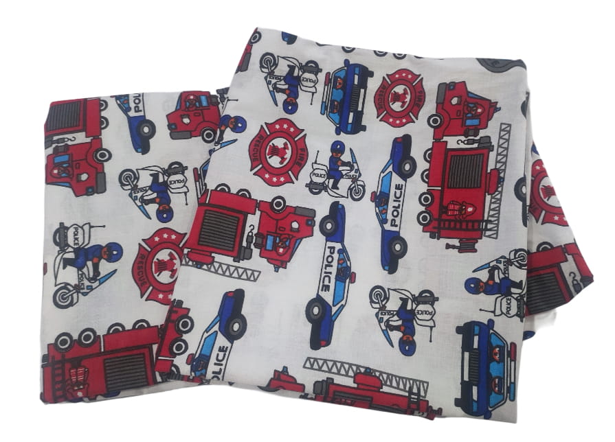 Pościel bawełniana 120x160 + 50x60 – idealna do dziecięcego łóżka, pościel straż pożarna, pojazdy policyjne, służbowe