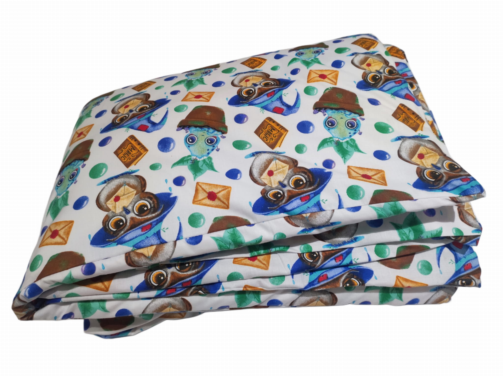 100% naturalnej bawełny – miękka, przewiewna i bezpieczna dla skóry dziecka. Zapewnia komfort snu przez cały rok.