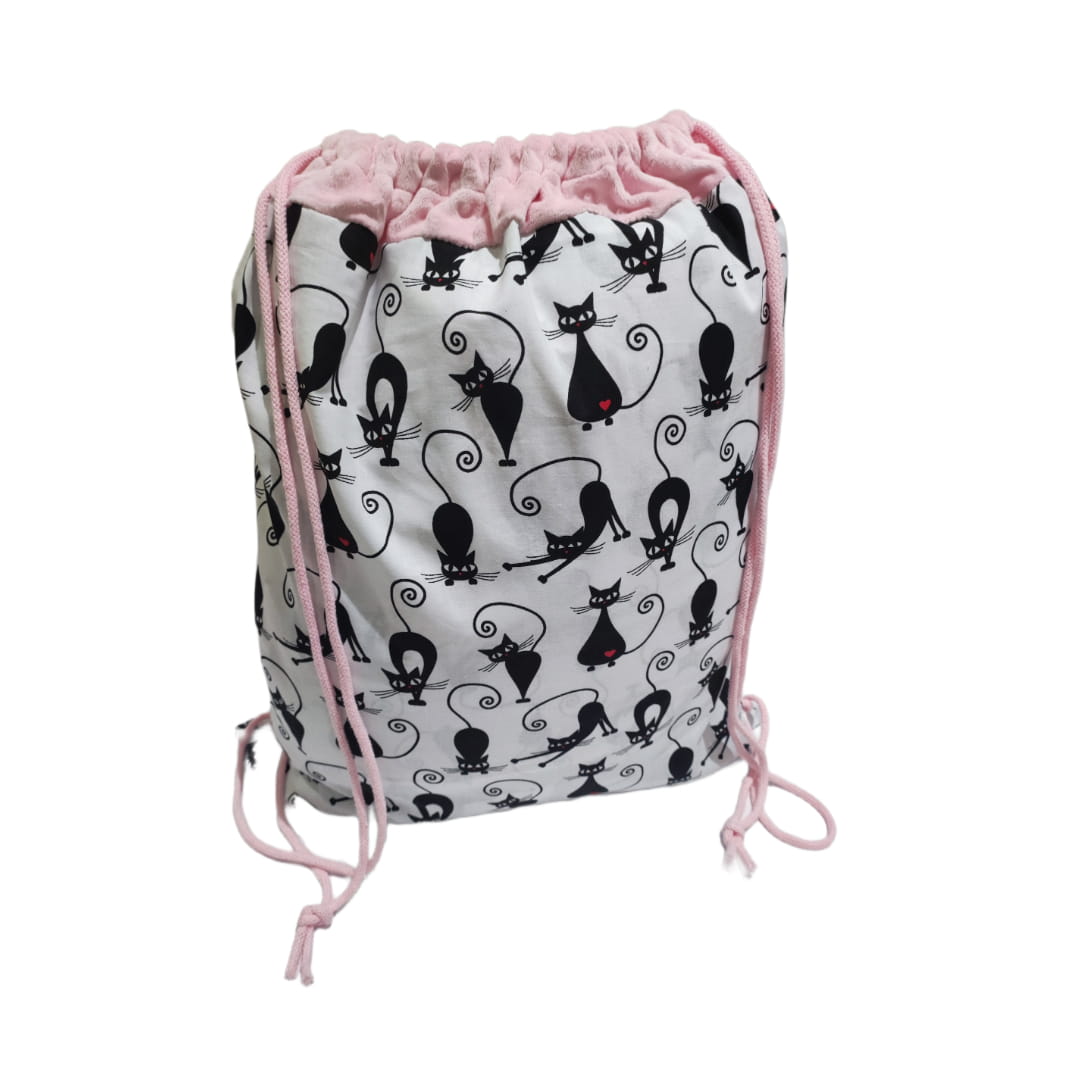 Worek do Przedszkola, na WF Bawełniany 35x40 Koty z różowym Minky - Worko-Plecak ze Sznurkami, Tunel Minky, Metka na Imię
