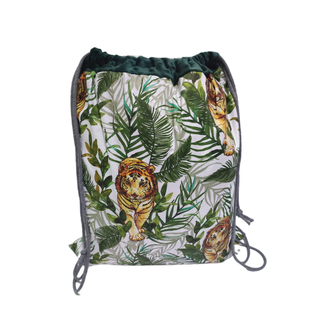 Worek na pościel Bawełniany 50x60 Tygrys w dżungli i butelkowa zieleń Minky