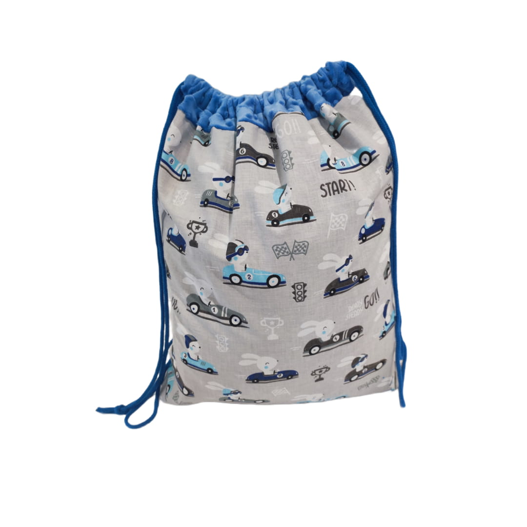 Worek na pościel XL Królik rajdowy wyścigowy z niebieskim Minky 60x70